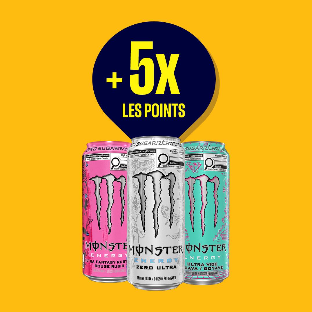 Achetez des boissons énergisantes Monster (473ml) — 2 pour 6 ou 3 pour 8 — et obtenez 5X les points sur votre achat !