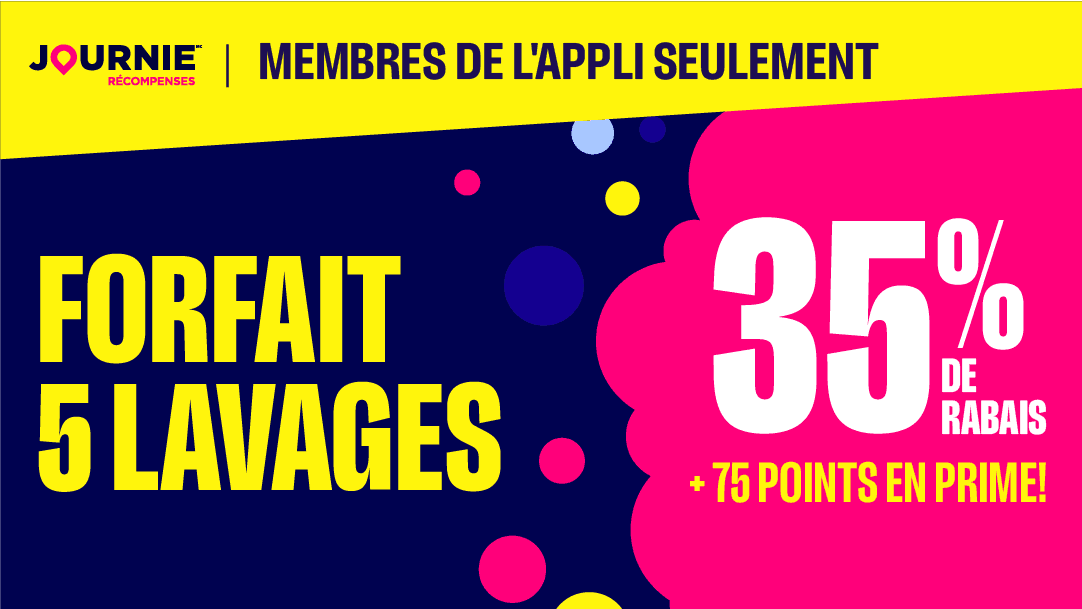 35 % de rabais sur 5 lavages + 75 points en prime